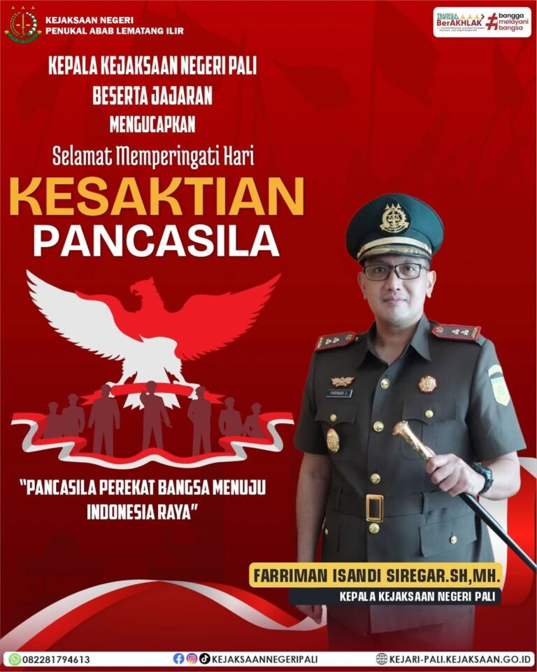 Farriman Isandi Siregar, SH, MH beserta jajaran mengucapkan Selamat Memperingati Hari Kesaktian