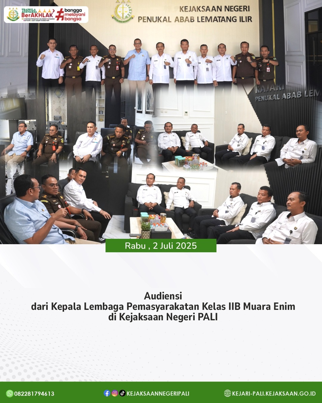 Telah dilaksanakan Apel Pagi di Halaman Kantor Kejaksaan Negeri PALI dengan bertindak sebagai Penerima Apel Kepala Seksi PAPBB Bapak Alfian Jauhari, S.H., M.H. yang diikuti oleh Kasubagbin, Para Kasi, Seluruh Pegawai, dan Karyawan Outsourcing Kejaksaan Negeri PALI. (13/04/2026)
