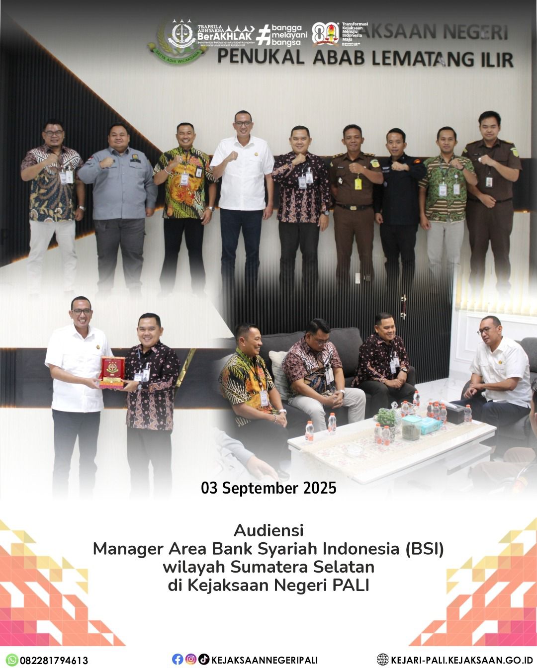 Telah dilaksanakan Apel Sore di Halaman Kantor Kejaksaan Negeri PALI dengan bertindak sebagai Penerima Apel Kepala seksi Perdata dan Tata Usaha Negara, Ibu Alfina Armando Parensyah, SH, MH., yang diikuti oleh Kasubagbin dan Para Kasi, Seluruh Pegawai dan Karyawan Outsourcing Kejaksaan Negeri PALI. (10/04/2026)