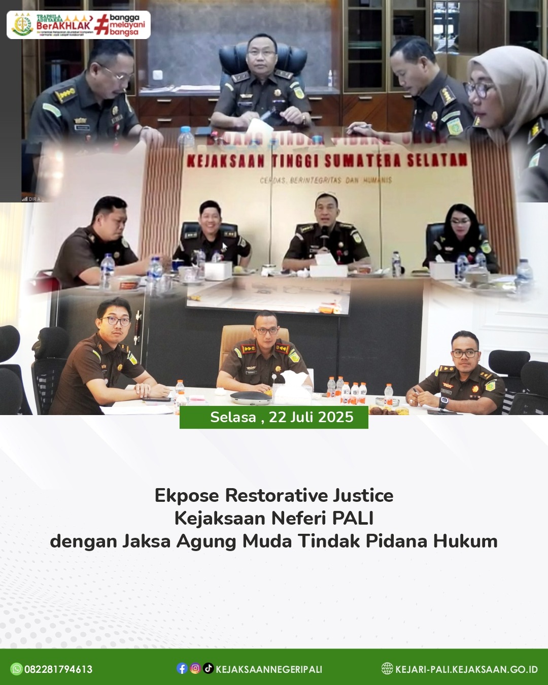 Ekpose Restorative Justice Kejaksaan Negeri PALI dengan Jaksa Agung Muda Tindak Pidana Hukum.