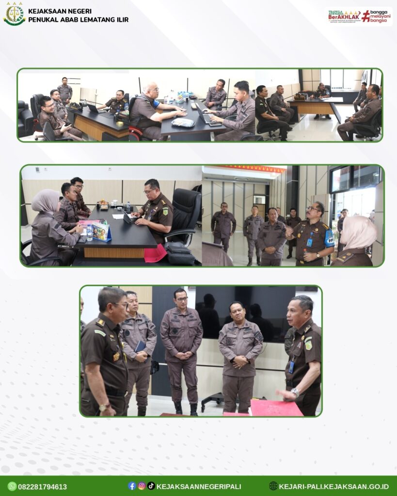 Bertempat di Kejaksaan Negeri Muara Enim telah dilaksanakan Inspeksi Umum oleh Tim Inspeksi dari Jaksa Agung Muda Pengawasan di Wilayah Hukum Kejaksaan Tinggi Sumatera Selatan. Kegiatan Inspeksi Umum tersebut dipimpin oleh Plt. Inspektur I pada Jaksa Agung Muda Pengawasan Bapak Haruna, SH, MH beserta rombongan didampingi Plt. Asisten Pengawasan Kejati Sumsel Bapak Zainul Arifin, SH, MH. Inspeksi Umum tersebut dilaksanakan bertujuan untuk mengevaluasi capaian kinerja dan menilai ketertiban pelaksanaan tugas terhadap 5 (lima) Kejaksaan Negeri yang ada di Wilayah Hukum Kejaksaan Tinggi Sumatera Selatan yaitu pada Kejaksaan Negeri PALI, Kejaksaan Negeri Muara Enim, Kejaksaan Negeri Lahat, Kejaksaan Negeri Pagar Alam, Kejaksaan Negeri Empat Lawang.