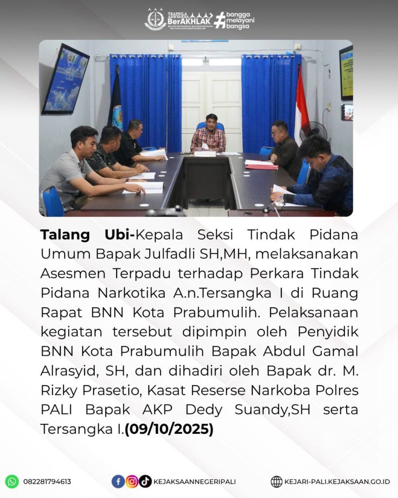 Kepala Seksi Tindak Pidana Umum Bapak Julfadli SH,MH, melaksanakan Asesmen Terpadu terhadap Perkara Tindak Pidana Narkotika A.n.Tersangka I di Ruang Rapat BNN Kota Prabumulih. (09/10/2025)