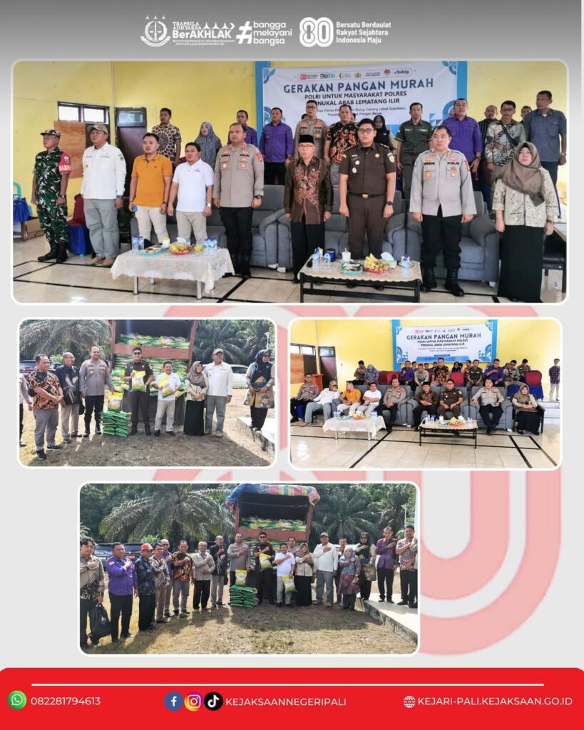 Kepala Kejaksaan Negeri PALI diwakili oleh Kasubsi II Bapak M. Rezha Rachman, SH menghadiri kegiatan Gerakan Pangan Murah (GPM) bertempat di Halaman Kantor Camat Penukal Utara Kabupaten PALI dalam rangka menjaga stabilitas pasokan harga pangan pokok untuk menekan laju inflasi tahun 2025.(14/08/2025) Bahwa Kegiatan Gerakan Pangan Murah (GPM) tersebut dibuka oleh Bupati PALI yang diwakili Staff Ahli Bupati Bidang Kemasyarakatan dan Sumber Daya Manusia Bapak Drs. Kusmayadi dan dihadiri Kepala Polres PALI AKBP Bapak Yunar Hotma Parulian Sirait, SH, SIK, MIK, Dandim 0404/Muara Enim diwakili oleh Bapak Serma Martosa, Kepala Dinas Ketahanan Pangan Kabupaten PALI Bapak Khairaman, SE, Kepala Inspektorat Kabupaten PALI yang diwakili oleh Ibu Leni, SE, MM, CGCAE, Kapolsek Penukal Utara Bapak Ipda Budi Anhar, SH, M.Si beserta jajaran, Camat Penukal Utara Bapak Fahrudin Lamsil, Perwakilan Perum Bulog Lahat Bapak Novan dan Bapak Candra, Kades Se-Kecamatan Penukal Utara.