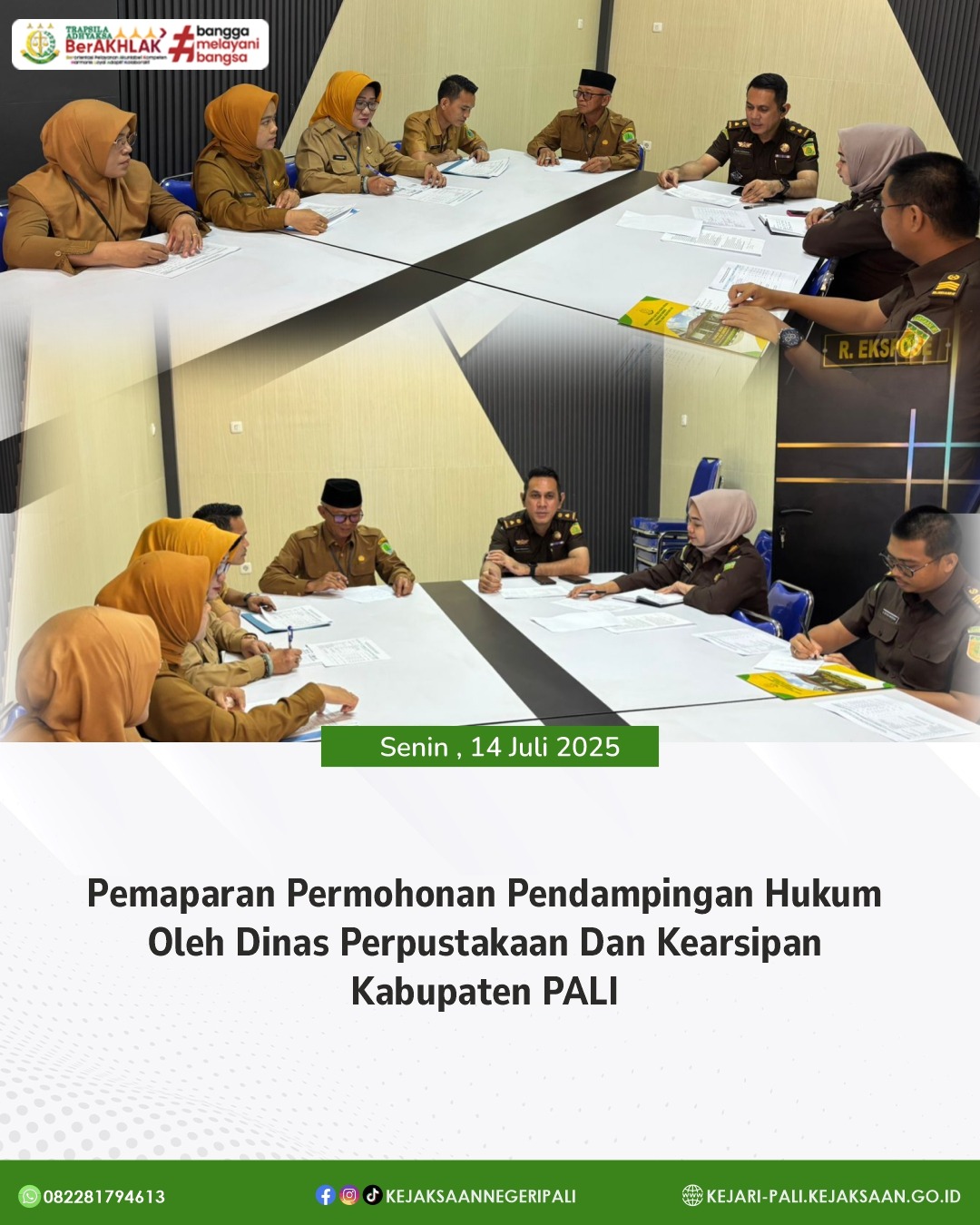 Kepala Seksi Intelijen Kejaksaan Negeri PALI Bapak Rido Dharma Hermando, SH, MH didampingi Kasubsi B Bapak M. Rezha Rachman, SH dan Jaksa Fungsional Bapak Kresna Satia Nagara, SH mengikuti Pemaparan Dinas Pertanian terkait Pelaksanaan Oplah (Optimasi Lahan) dan Cetak Sawah di Kabupaten PALI T.A 2025 Kegiatan tersebut dihadiri oleh Plt. Kadis Pertanian PALI Bapak Ahmad Joni, S.P, M.M dan Kabid Tanaman Pangan dan Hortikultura Ibu Widi Astuti, S.P dan staff.