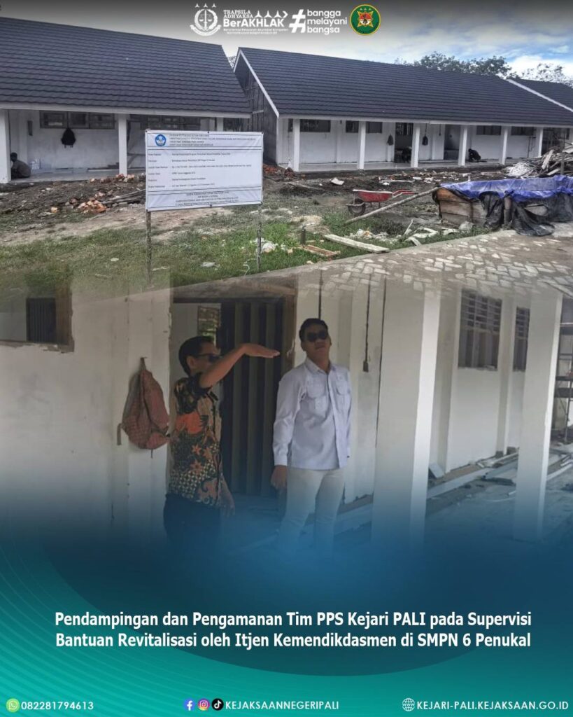 Tim Pengamanan Pembangunan Strategis (PPS) Kejari PALI yang diwakili Kasubsi II Seksi Intelijen Bapak M. Rezha Rachman, SH melaksanakan kegiatan Pendampingan dan Pengamanan terhadap Tim Inspektorat Jenderal Kemendikdasmen Dalam Rangka Supervisi Penerima Bantuan Revitalisasi Satuan Pendidikan dan Kunjungan Lapangan Pengamanan Pembangunan Strategis (PPS) di SMP Negeri 6 Penukal Kabupaten PALI yang dilaksanakan dengan Anggaran APBN Tahun 2025.(20/11/2025)