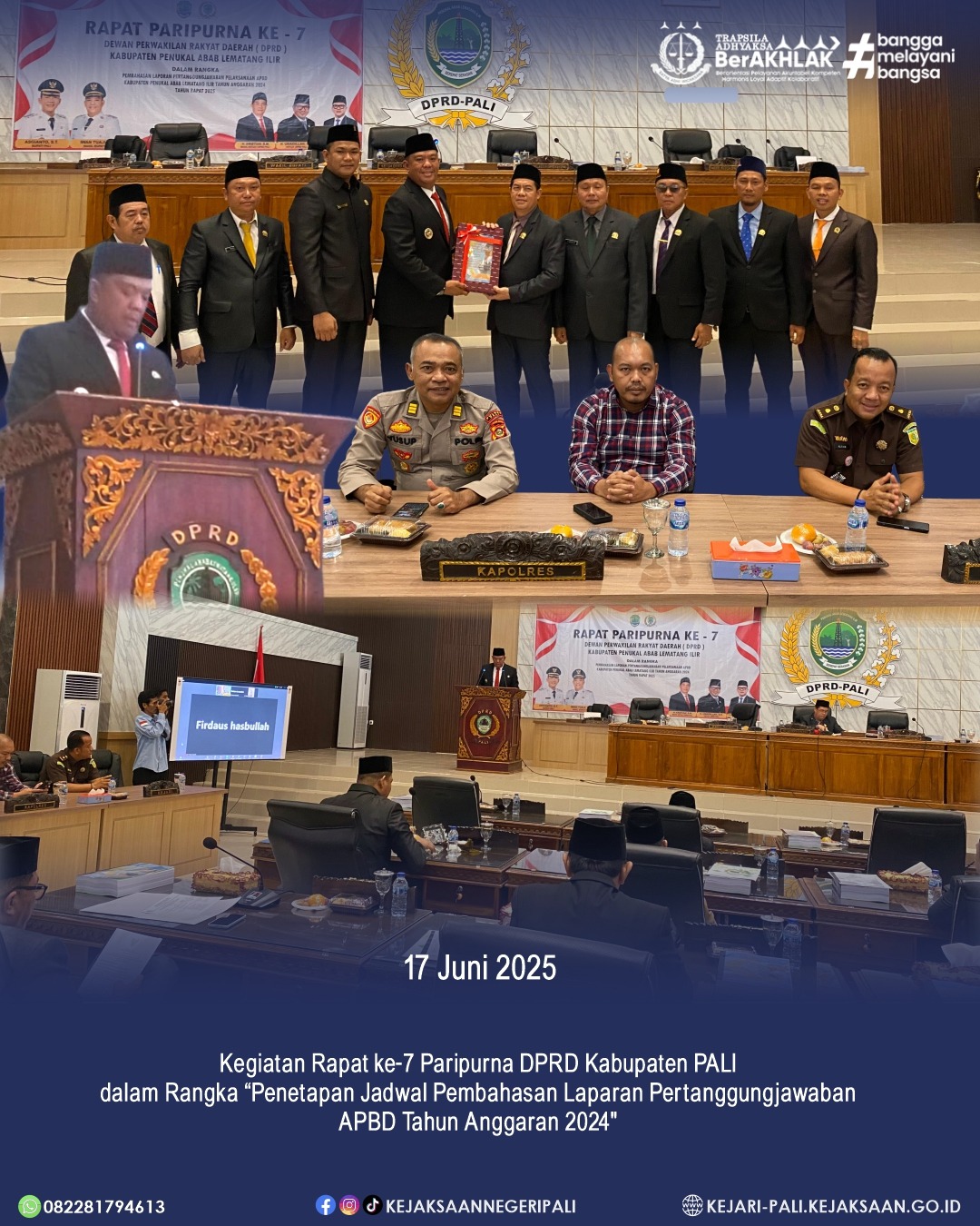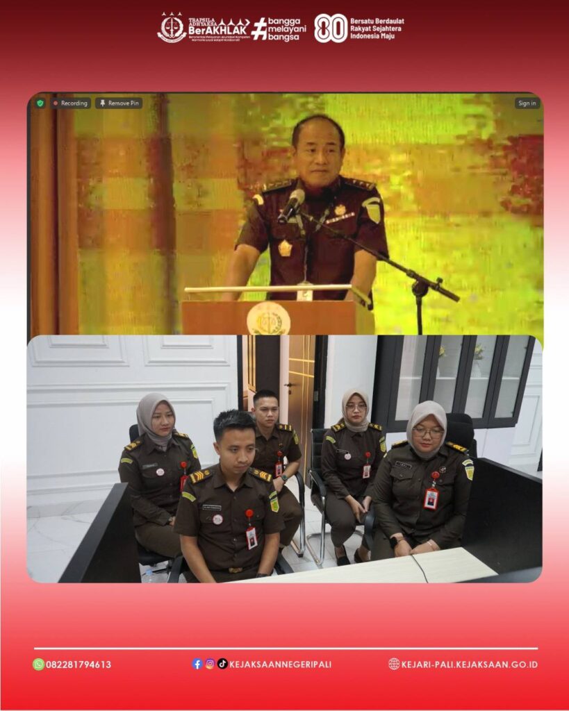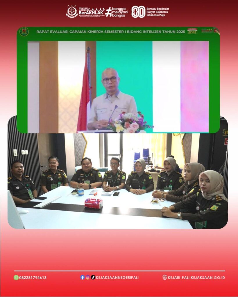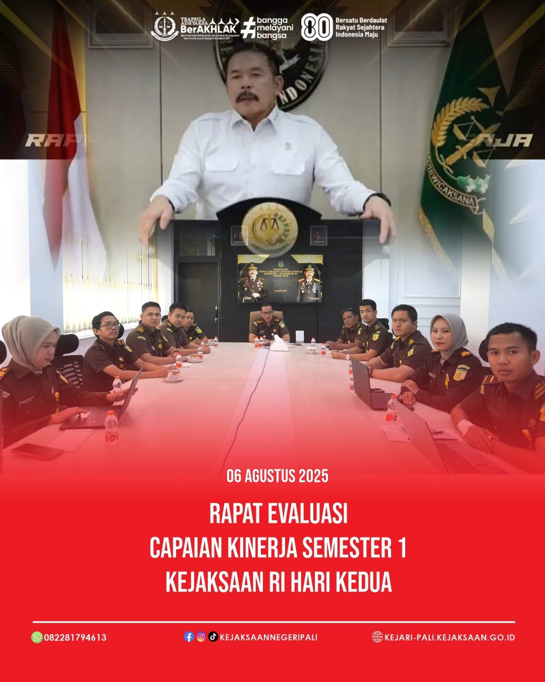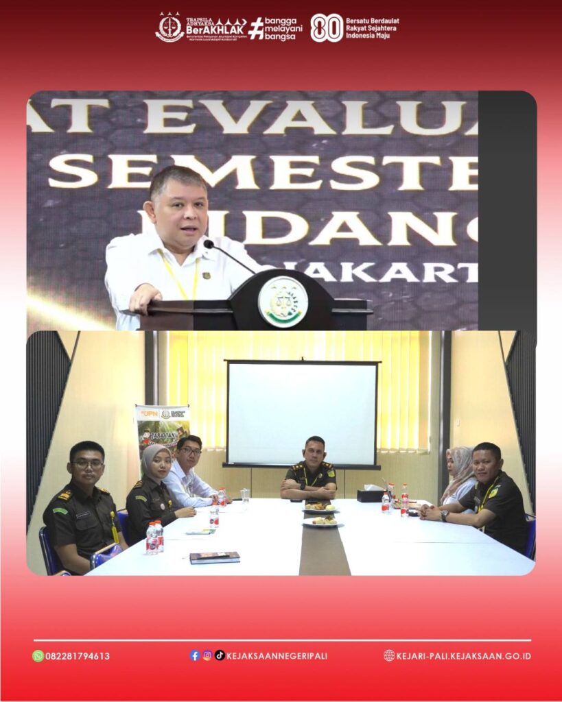 Kejaksaan Negeri PALI mengikuti lanjutan Rapat Evaluasi Capaian Kinerja Semester I Kejaksaan Republik Indonesia Tahun 2025 yang diselenggarakan secara nasional dan diikuti oleh seluruh Satuan Kerja Kejaksaan Republik Indonesia.