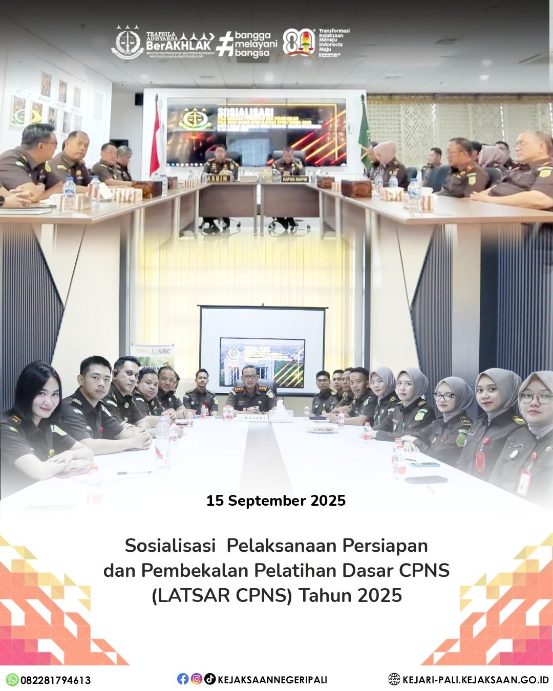 Kepala Kejaksaan Negeri PALI Bapak Farriman Isandi Siregar, SH, MH didampingi Kasubagbin, Para Kasi dan CPNS Kejaksaan Negeri Tahun 2025 mengikuti zoom virtual Sosialisasi Pelaksanaan Persiapan dan Pembekalan Pelatihan Dasar CPNS (Latsar CPNS) Tahun 2025.(15/09/2025)