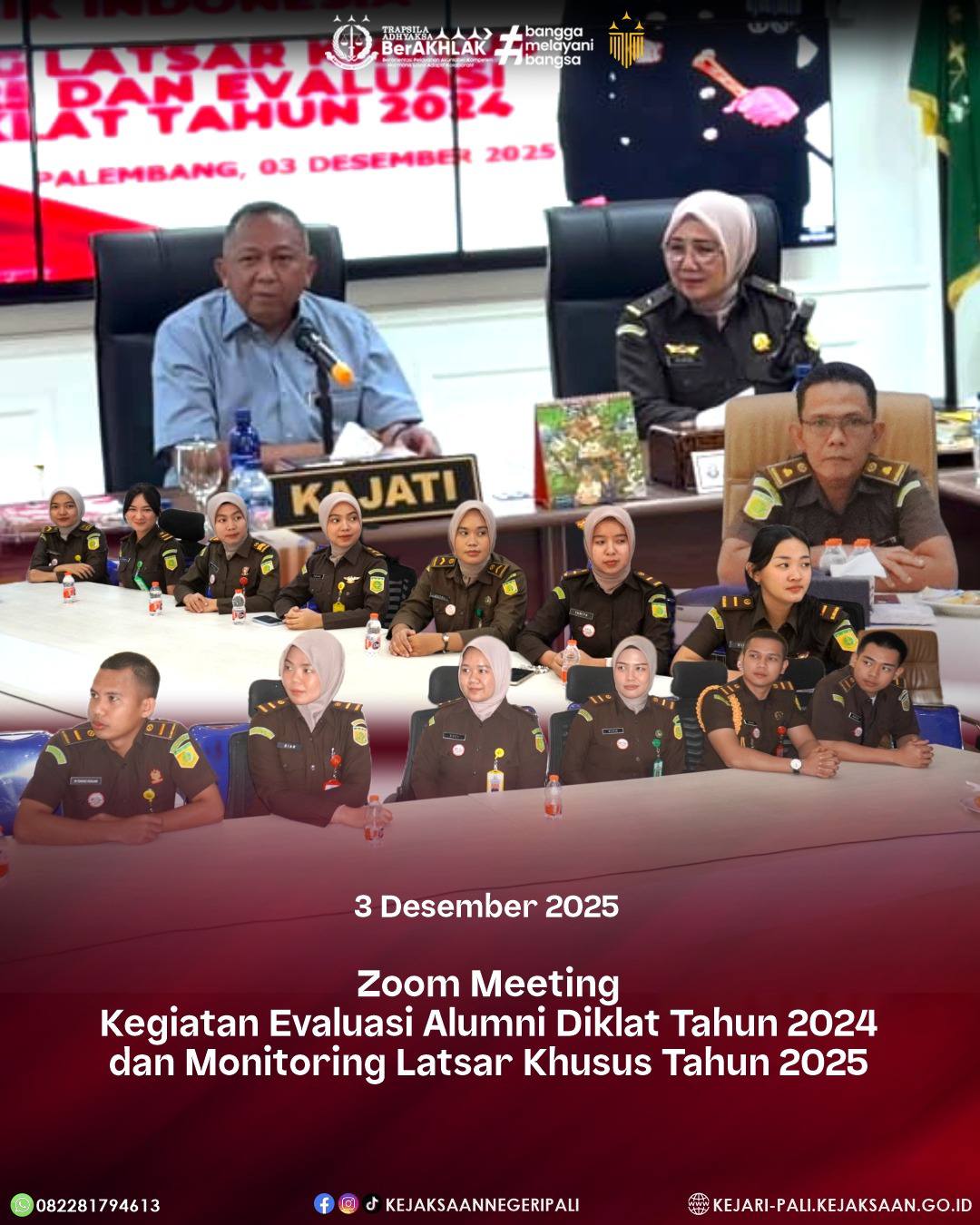 Kepala Kejaksaan Negeri PALI Bapak Farriman Isandi Siregar, SH, MH didampingi Kasi Datun Bapak Patar Daniel Panggabean, SH, MH, Kasi PAPBB Bapak Alfian Jauhari Hanif, SH, MH, Para Kasubai dan Jaksa Fungsional mengikuti zoom virtual Pengarahan Jaksa Agung Muda Tindak Pidana Umum. (18/11/2025)